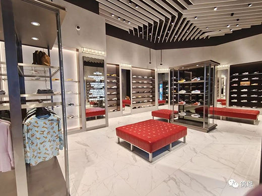 Onitsuka Tiger店鋪燈具選用靈活調(diào)節(jié)的軌道射燈隱藏在白色鋁格柵板中。燈具色溫2700k,營(yíng)造溫馨,舒適的購物體驗(yàn)環(huán)境。燈具顯色指數(shù)達(dá)到90以上。以便更好的展現(xiàn)商品的材質(zhì)紋理和真實(shí)色彩。
